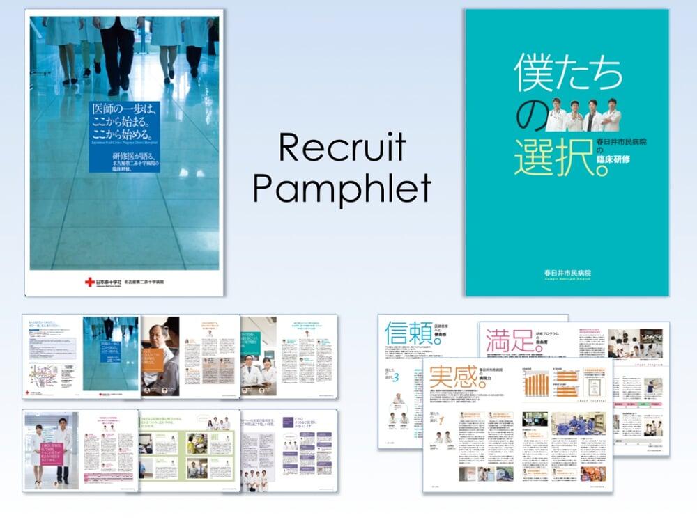 研修医募集イベントなどで使用する、パンフレットです。ただ情報を掲載するだけではなく、「病院の魅力はどこにあるのか」「それを正しく伝えるにはどういった構成が良いか」を皆さんと一緒に考えながら作り上げます。企画、取材、撮影、原稿作成、デザイン作成まで全てプロの手で行ないます。
